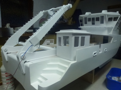 réalisation des armoires ( cabine timonerie) : matériau polystyrène choc soudé au