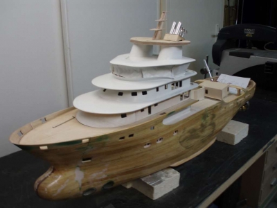 plate forme supérieur avec les échappements et le mât. A noter les trois trous qui recevront les canons à eau fonctionnels