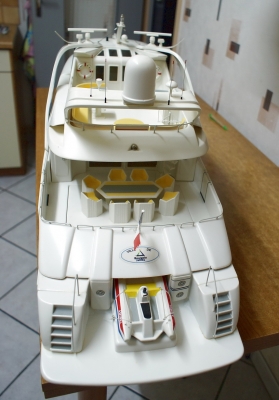 Modèle réduit :Caractéristiques du Kit réf.2415 Graupner RC.Méga-Yatch équipement radio 2,4 GHz 5 voies Longueur : 1470 mm Largeur : 284 mm Hauteur : 400 mm Tirant d'eau : 65 mm Déplacement : 12,2 kg avec accus